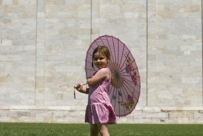 Ga je ’s middags toch naar buiten? Vergeet dan niet om je kind een zonnehoedje op te zetten en een parasol op de buggy of wagen te plaatsen. Leg er geen doek overheen. Hiermee houd je de zon niet weg, waardoor het dus nog warmer wordt in de buggy of kinderwagen.