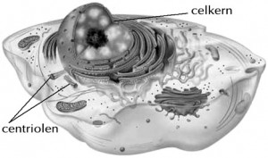 Over de taak van de centriolen komen we iets te weten, als we de celdeling bestuderen. Bij de celdeling worden de celkern en het cytoplasma in tweeën gedeeld, waarna de beide delen als afzonderlijke cellen verder leven. In de celkern bevinden zich draadvormige organellen, die chromosomen genoemd worden.